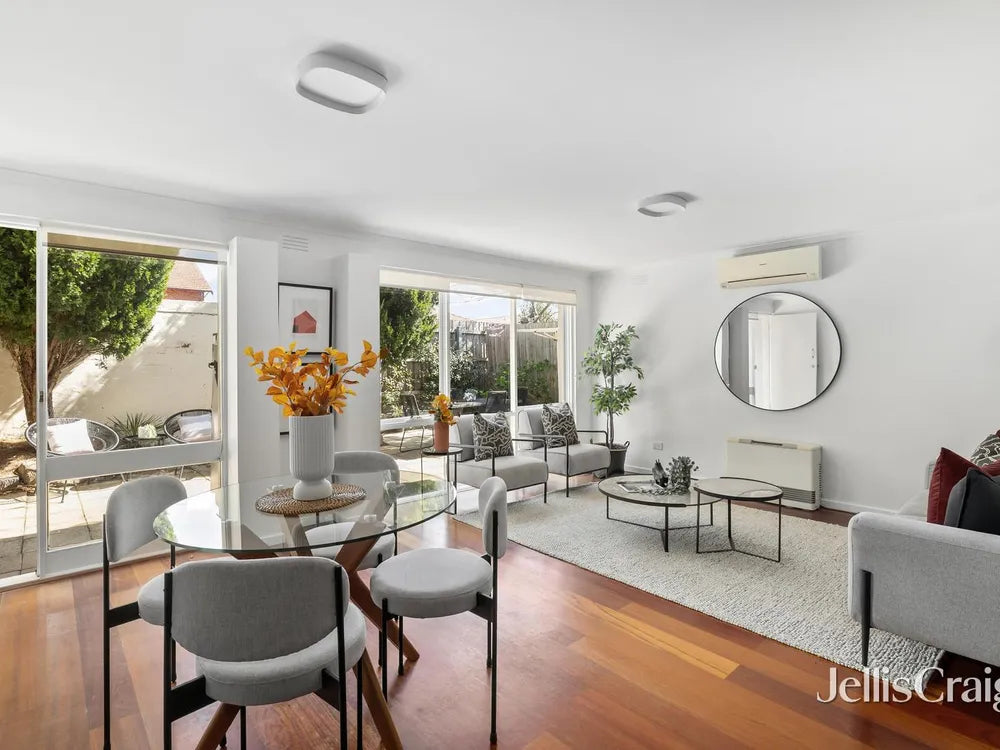 At the rear of a boutique block, this beautifully presented townhouse finds its stride in privacy, light and location. The energy of Carlisle Street is just moments away, yet the leafy courtyard entry creates an instant sense of calm, stepping through to a sun-drenched interior where easy living and relaxed entertaining are at the forefront. Within, timber floors sweep across open-plan living and dining areas, with the well-appointed kitchen at one end and a north-west terrace spilling out at the other. All-day sun fills the space, setting up an easy flow no matter the weather, whilst upstairs, three bedrooms continue the light-filled mood, two with balconies of their own and each fitted with generous built-in robes. The central bathroom is sleek and stylish with a twin vanity, complemented by a ground-floor laundry and second WC. Everyday detail hasn’t been overlooked, with split system heating/cooling, Rinnai gas heating, automated gated entry, intercom and an internal-access remote garage. While the interiors deliver serenity and independence, the location plugs straight into Melbourne living. Cafes, restaurants and wine bars line the street, trams run moments from the door, and Balaclava Station is within walking distance, whilst a little further along, St Kilda’s foreshore brings the bay into play. For first-home buyers or investors, it’s the rare mix of privacy, sunlight and lifestyle that keeps this pocket so tightly held.